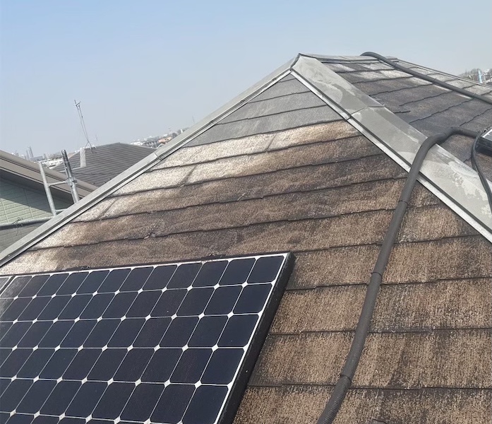 屋根は高所にあるのですべてを目視できませんが、年数か経過してくると屋根に色褪せや汚れの目立ち、苔の発生などが現れてきます。