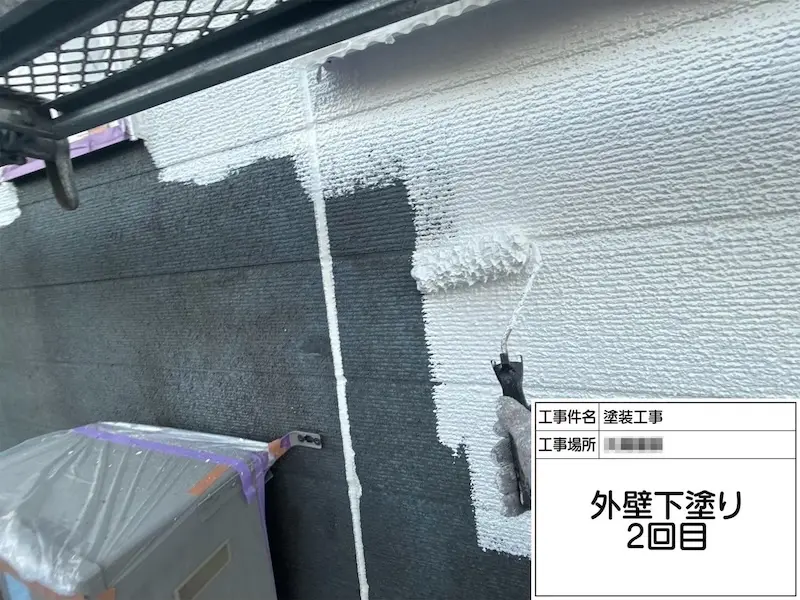 こちらでは下塗りを2回行なっており、下地や塗膜の状態に合わせて臨機応変に対応することが大切です。