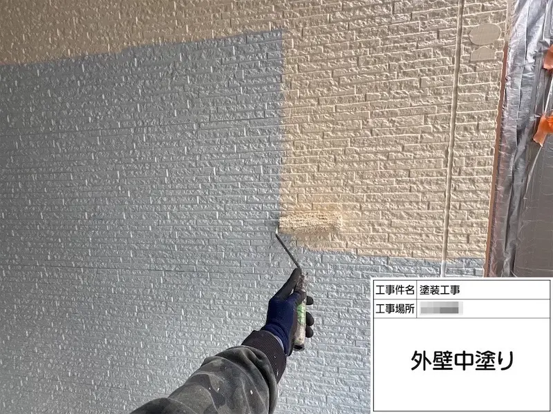 本日は外壁塗装の中塗り ベースカラーを塗る工程をレポートします!