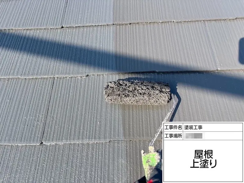 上塗りまで進めば塗膜にある程度の厚みが出ていますので、均一な色合いになり、屋根がきれいに仕上がります。