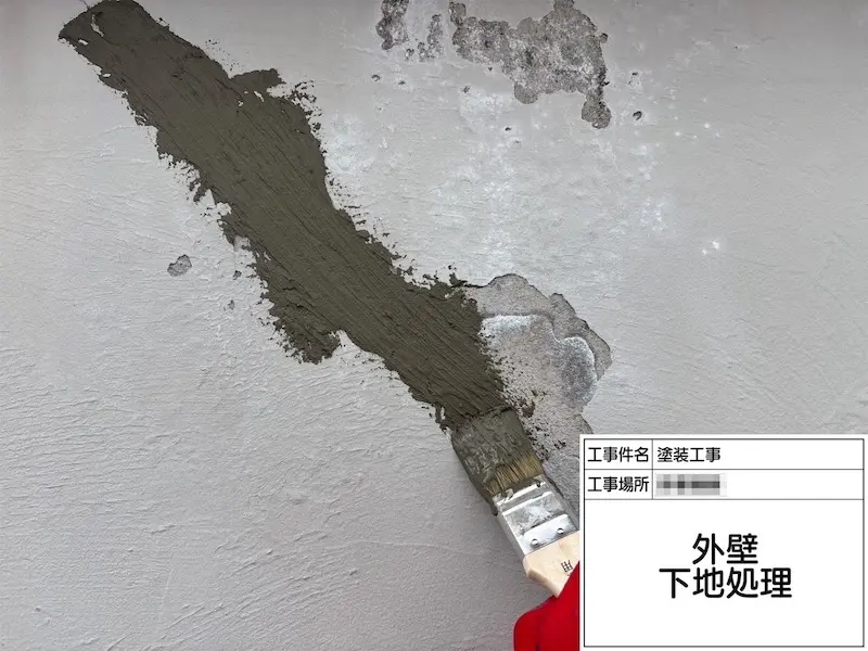 外壁の塗装が剥がれていたため、樹脂モルタルで補修しました。