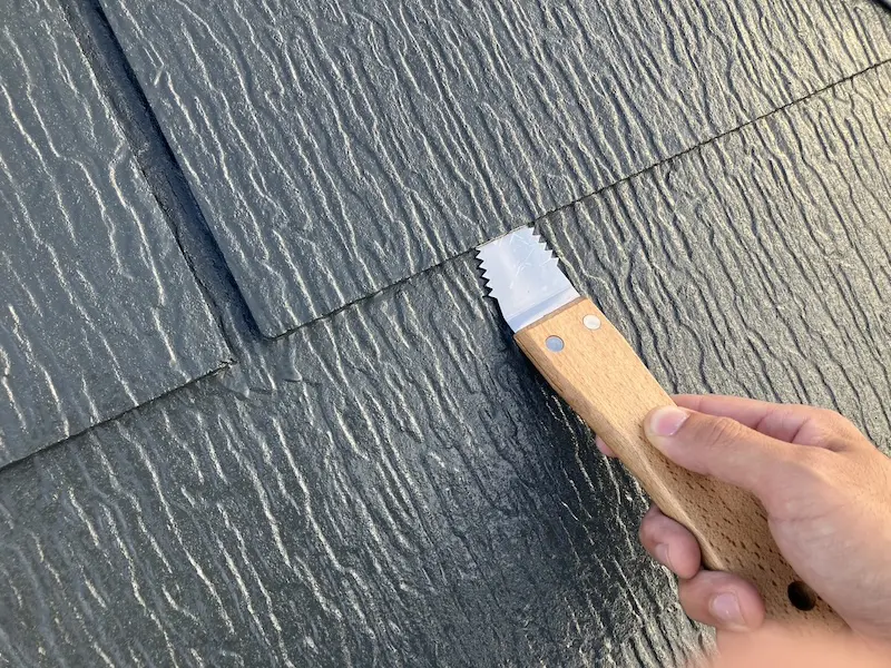 縁切りとは塗装後にスクレーパーなどでスレートの継ぎ目に隙間をつくる作業のことです。
