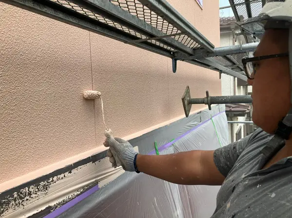 今回、下塗り塗材はホワイト色でしたが、中塗り・上塗りは綺麗なピンクをお選びいただきました。